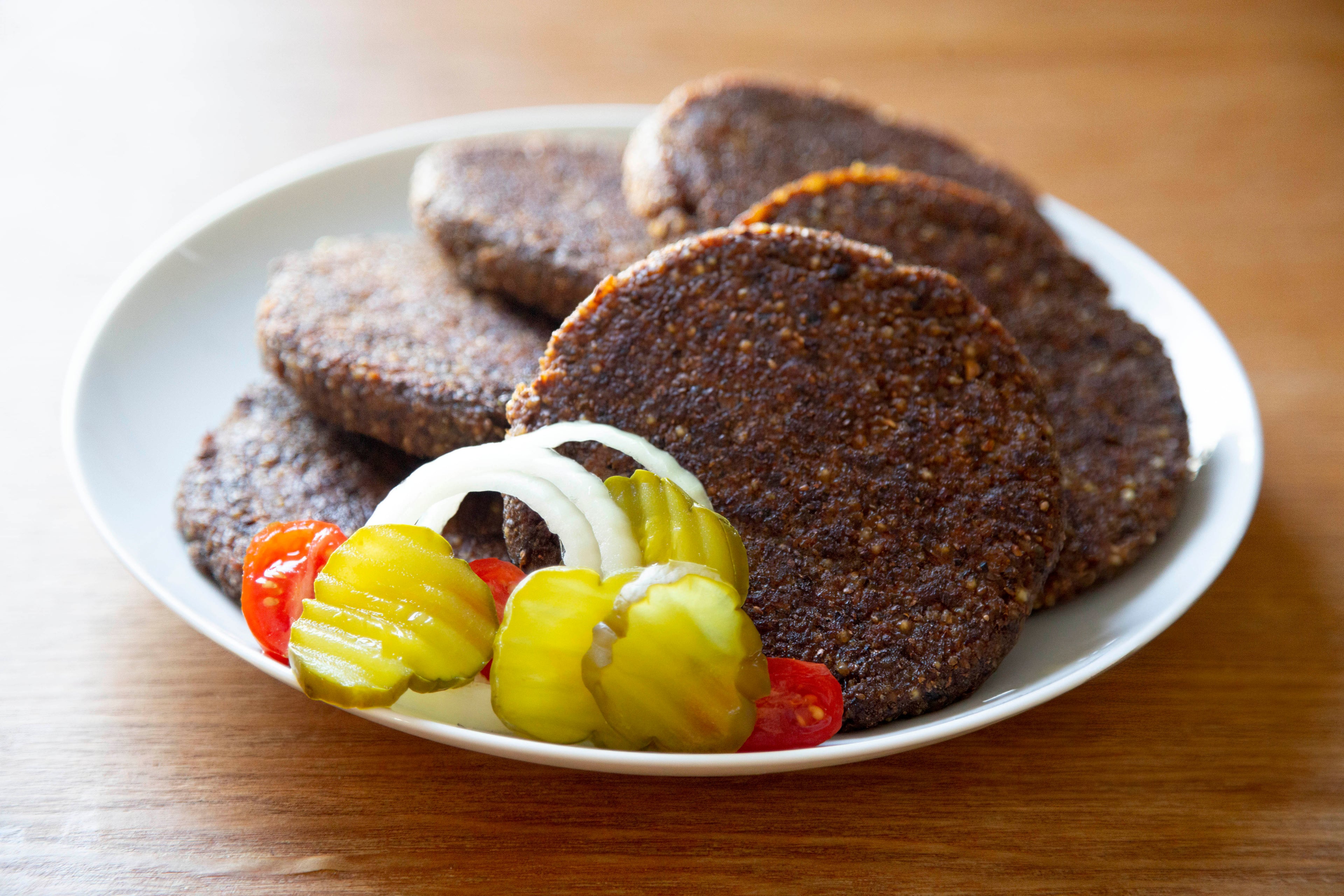 Fresh, made-to-order vegan burgers, made from black beans, mushrooms, millet, and ultra burger-y seasonings for a classic burger that's delicious with all your favorite fixings!