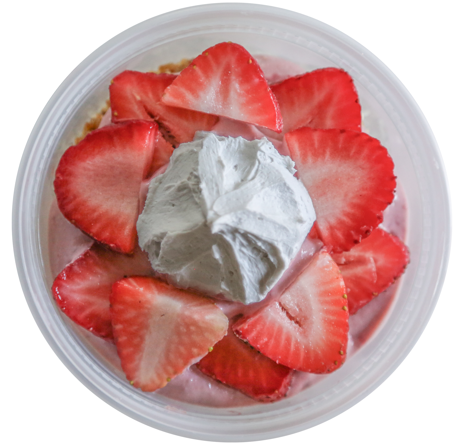 New to the menu this week, our Strawberry Shortcake Dessert Cup features an almond-oat-date crust, topped with strawberry cashew cream, fresh strawberries, and fresh coconut whipped cream.