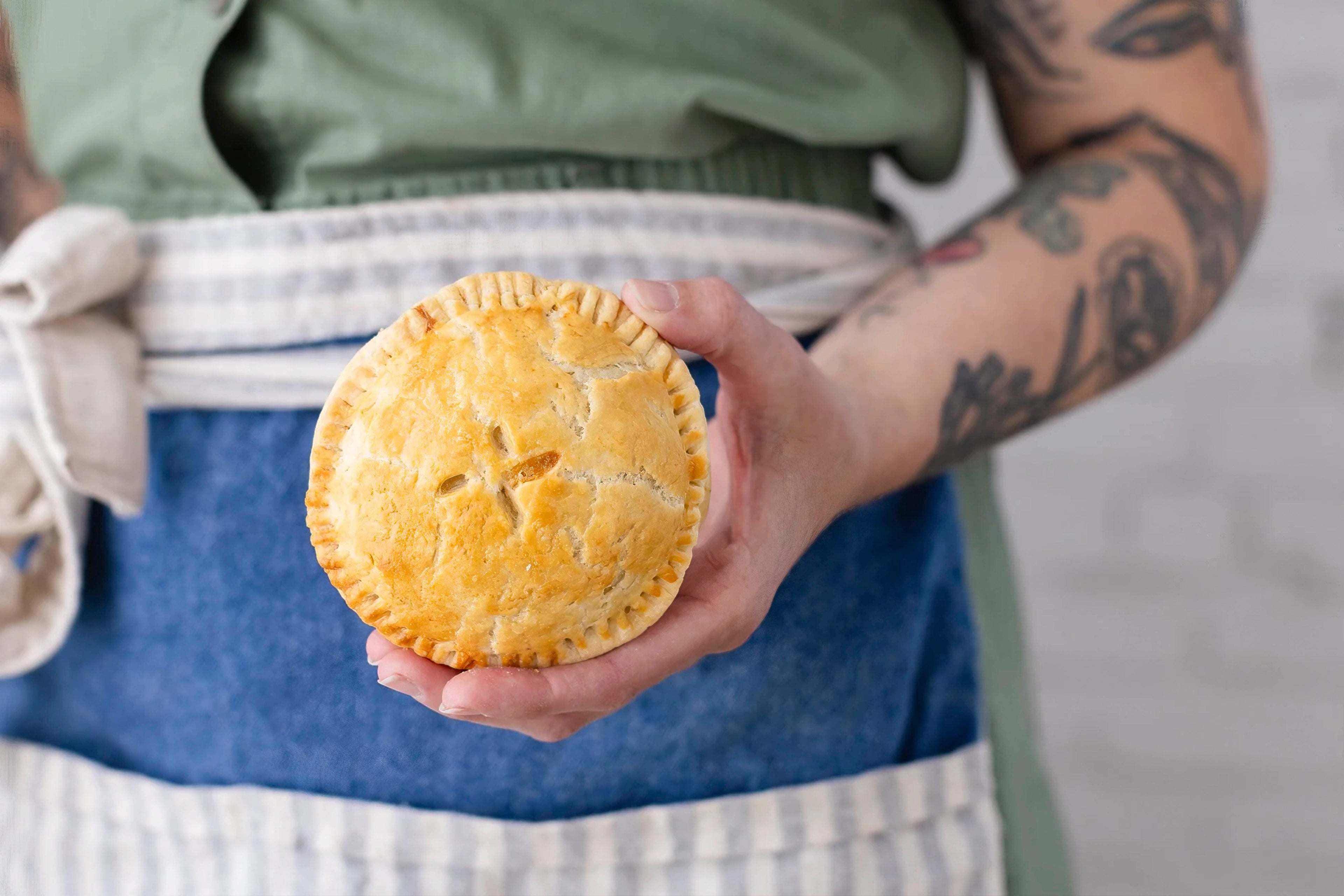We're partnering with Domestic Bones to offer a Vegan Pizza Hand Pie! Filled with our Italian sausage-style crumbles, plus tomato sauce, sweet peppers, onion, garlic, herbs & spices. Available with regular or GF crust!